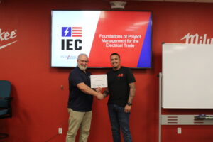 The origins of the IEC program date back to 2020, when IEC desired to produce an entry-level project management development program specific to the electrical trade. IEC 2020 President Candy Branham began looking for someone to author the program material and Brian’s name came up. Bobby asked Brian if he would be willing, saying ‘they’re just looking for someone to write it,’ and Brian agreed.