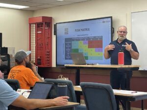 When he talks about risk management, he uses one of his favorite analogies and teaches them how to be ‘fruit pickers.’ There’s low-hanging fruit, and he talks about his experiences as a foreman and the low-hanging fruit of controlling cost by not paying people to drive to and from work, or not paying them to sit down for 20 minutes instead of 15.