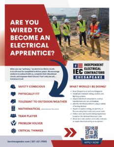 At SPARK in 2025, I offered some tips on how chapters and contractors work together to build the workforce of tomorrow — and offer these same tips here for Insights readers. I have a passion for the skilled trades and apprenticeship and believe I am at my best helping young people find a skilled trades career. I’ve been involved with workforce development since 2014 and at IEC Chesapeake (IECC) for three years. We offer varied opportunities for training: