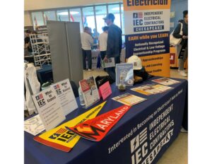 We have a large popup banner with a headline that can be read from across the room — Become an Electrician. On the table, we always have our ‘short list’ of what to expect as an electrical apprentice and hit those highlights that define the strength of our programs: