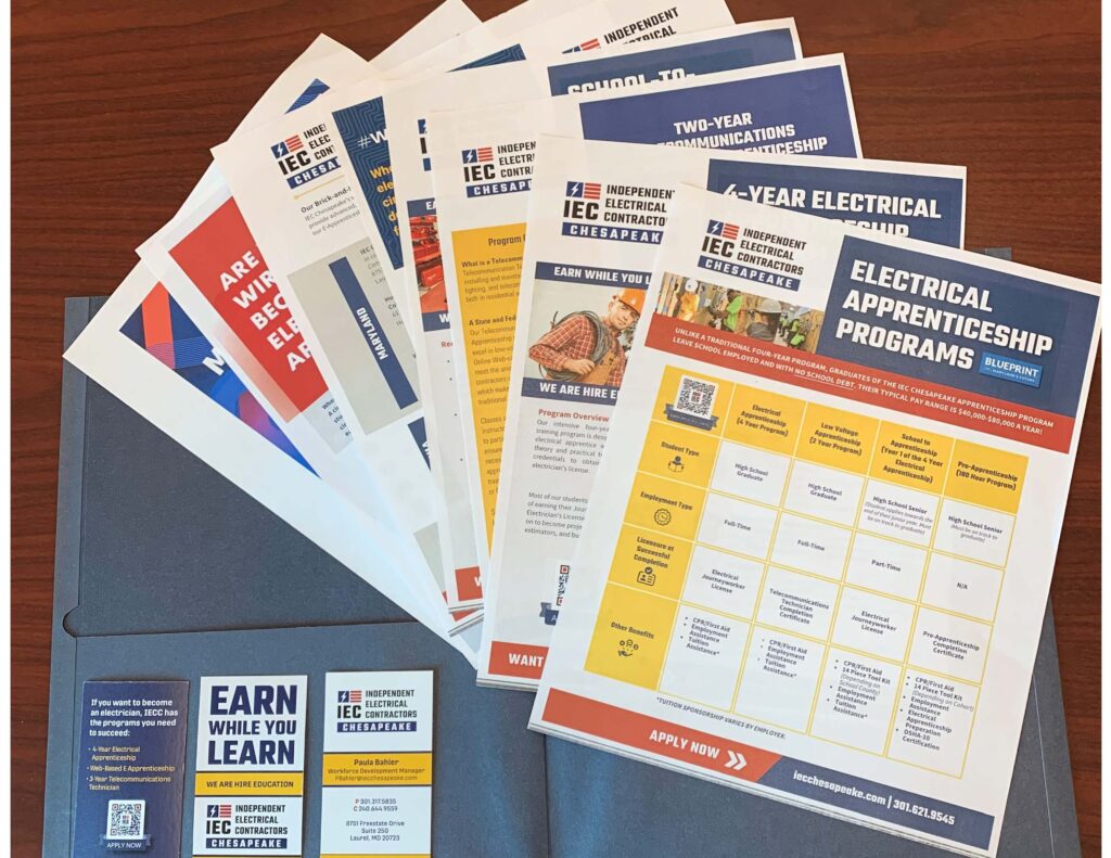 This single sheet is branded with the “Blueprint for Maryland’s Future” logo, an initiative for high schools to send 45% of their students to a career or apprenticeship by 2030. It’s a big deal in Maryland so adding this branding is recognizable to school partners.