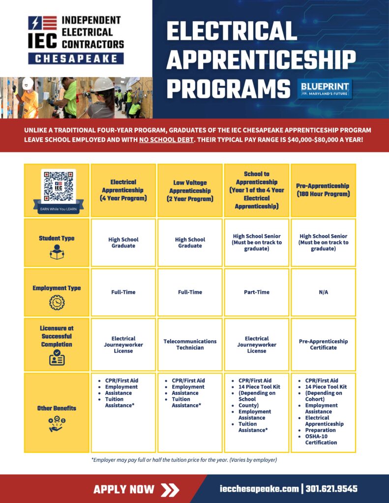 - School to Apprentice — high school seniors who start first year of their electrical apprenticeship while still in high school